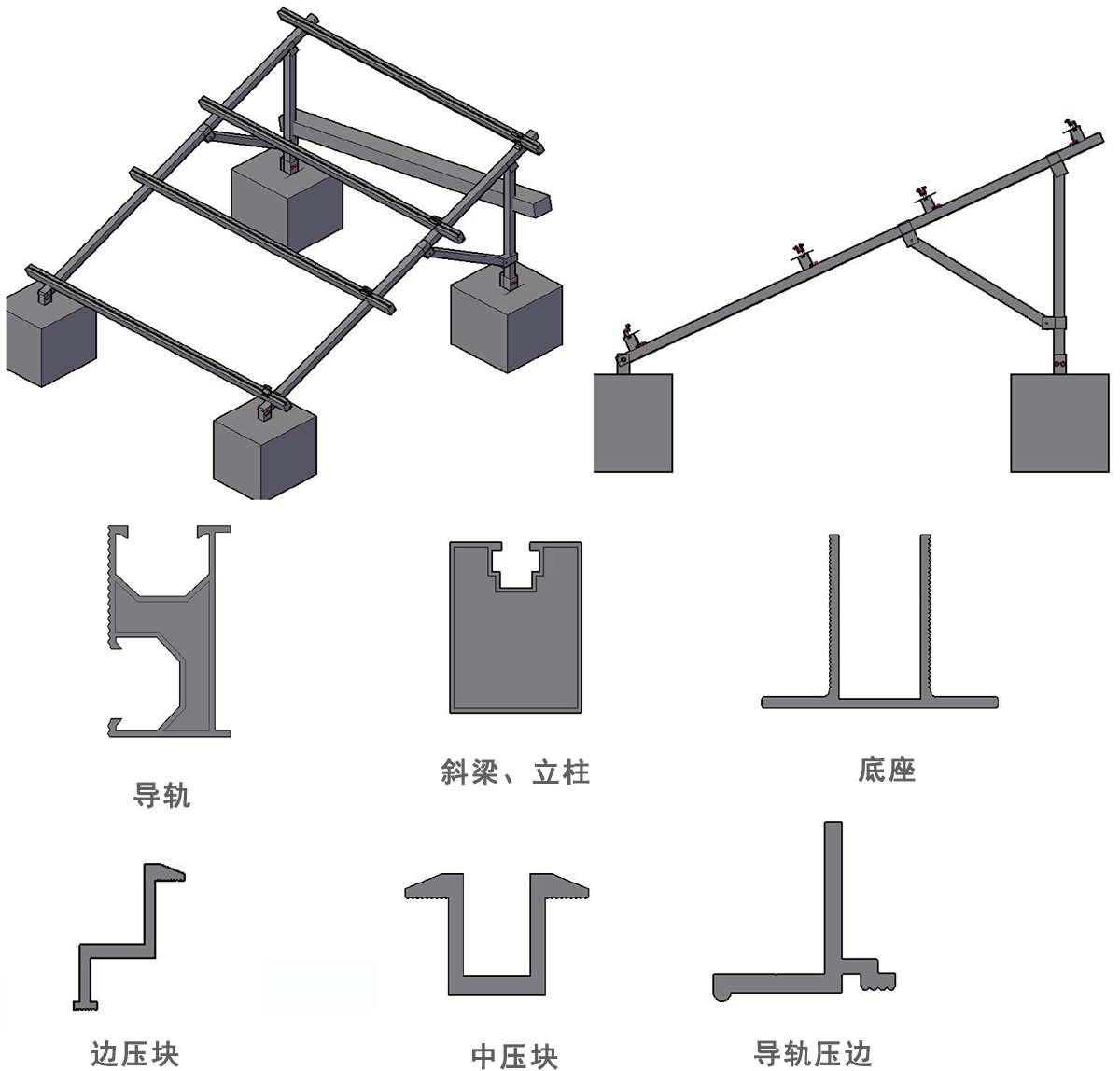 水泥平面和彩鋼瓦三角架光伏支架系統